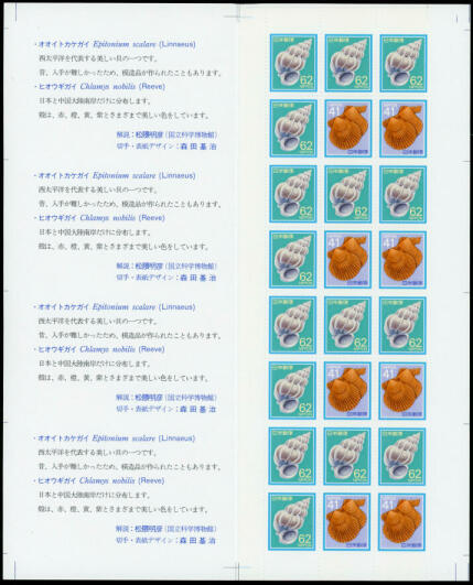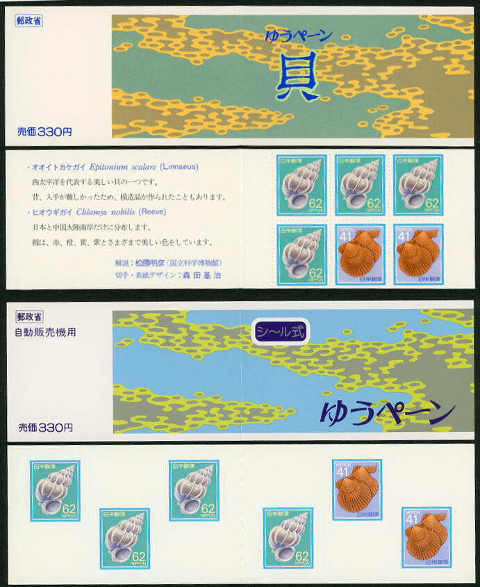 1989年4月の消費税導入に際し、定形書状用の62円、私製葉書用の41円切手が発行されましたが、どちらも貝の図案となりました。前年4月に普通切手の複数図案化と称して、貝図案の60円、40円切手が発行されたのを引き継いだ形となっています。ただし貝図案とはいっても、前年とは別種の貝です。